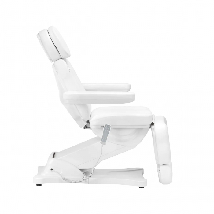 Tuolissa on kolme moottoria, joilla säädät korkeuden, selkänojan ja jalkatuen helposti kaukosäätimellä. Lämmitystoiminto istuimessa ja selkänojassa lisää mukavuutta ja rentouttaa asiakkaan hoidon aikana.